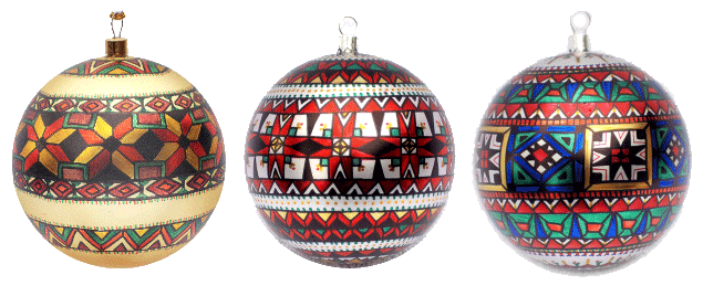 an assortment of unique, one-of-a-kind Ukranian Christmas ornaments.
